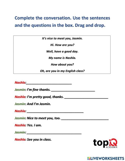 Complete the conversation interactive worksheet from www.liveworksheets.com