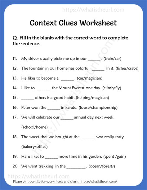 Web free, printable context clues worksheets to develop strong comprehension, language and writing skills. We went to the _____ sanctuary last week. A) multiple meaning words b) hints that an author gives to help define difficult or unusual words c).