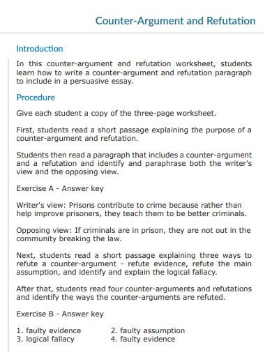Counter Argument And Refutation Exercises. Pretend you are writing an essay in favor of allowing smoking on campus. Web refutation (counterargument) exercise when writing a persuasive paper, your argument will be much stronger if you identify an opposing argument (counterargument) and.