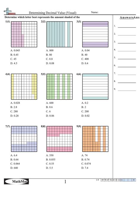 Web Determining Decimal Value (Visual) Math Www.commoncoresheets.com Name: